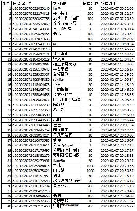 东平县新型冠状病毒感染的肺炎疫情防控募捐,2020年2月7日共收到微信捐款40笔,截至2020年2月7日24时,当日收到捐款人民币3882元,截至2020年2月7日24时累计共收到捐款人民币27876.5元。