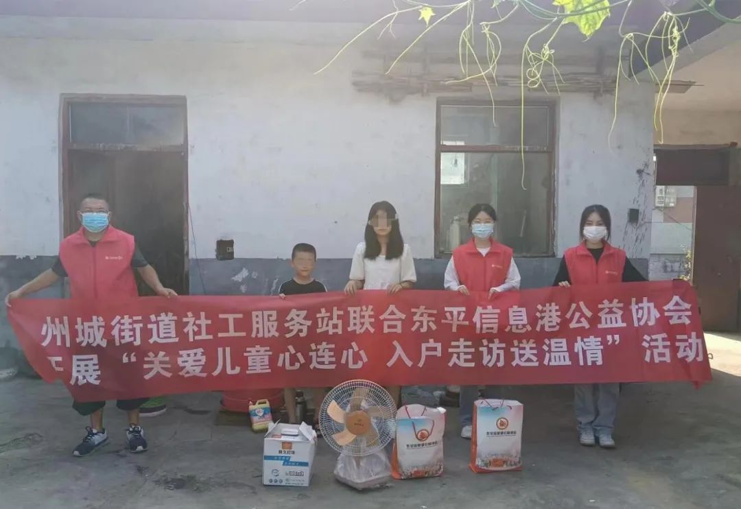 为关心关爱儿童身心健康成长,营造温馨有爱的成长生活环境。7月25日,州城街道社工服务站联合东平信息港公益协会开展了“关爱儿童心连心,入户走访送温情”公益活动,本次活动共走访了19户家庭。州城民政办主任韩伟、副主任刘晶、办事员李德保一行三人走访本次活动,东平信息港公益协会副会长朱晓楠、秘书长尹文敏带队活动。伸出温暖手,打开爱心门。东平信息港公益协会的社会工作者们首先来到了州城街道小美(化名)家里进行走访。小美今年15岁了,非常爱笑,学习认真刻苦,并且多次取得优秀的成绩,满墙的奖状见证了她的努力。父母却因病去世,目前和爷爷奶奶生活在一起,没有经济收入,但生活的苦难并没有将她打倒,反而使她更加坚韧。志愿者们为她送去作业本、钢笔等学习用品,协会的社会工作者与她进行热情的交流,并鼓励她继续好好学习,健康成长。小美的爷爷奶奶在开心的同时也表示十分感谢工作者们对小美的关心和帮助。