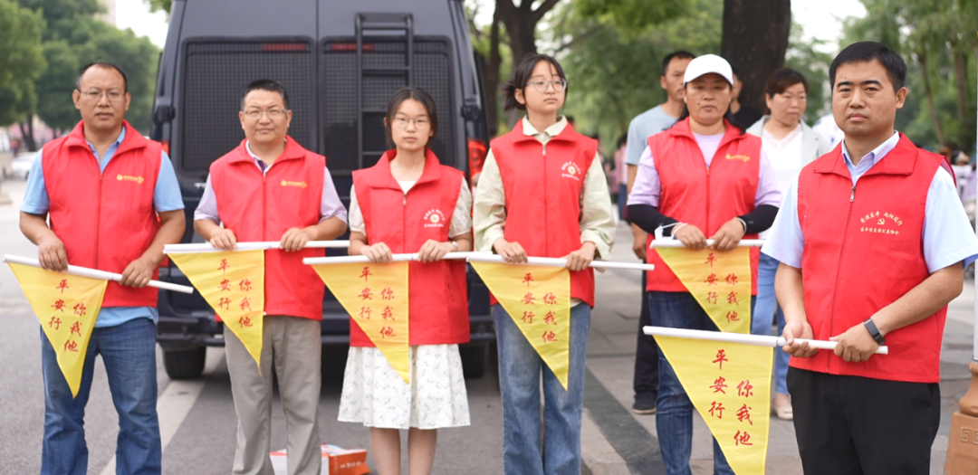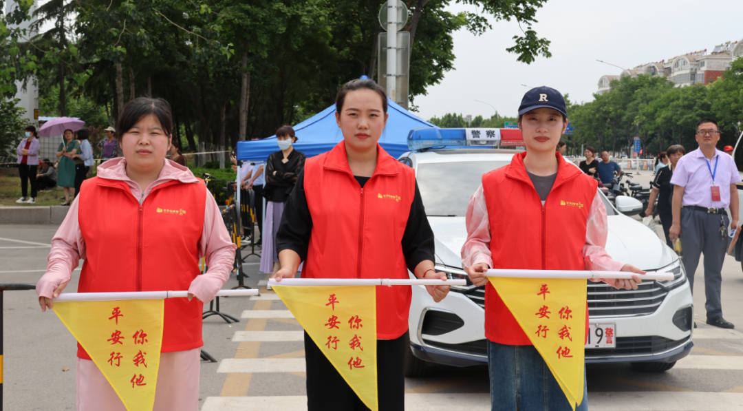为了给莘莘学子营造一个良好的考试环境,志愿者们早早地来到各考点门前的志愿服务点,手持指挥旗,进行文明引导、秩序维护,提醒送考的家长遵守秩序,不要大声喧哗,努力为考生们安心考试营造一个安静而有序的外围环境,整齐划一的红马甲成为考场外一道靓丽的风景线。