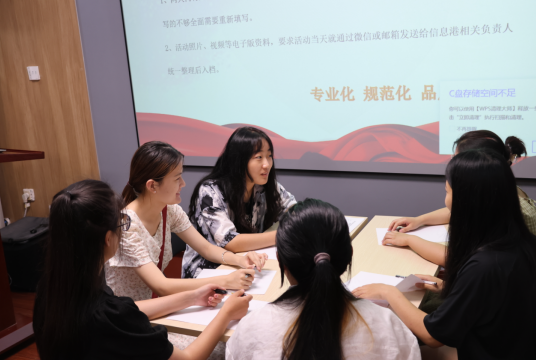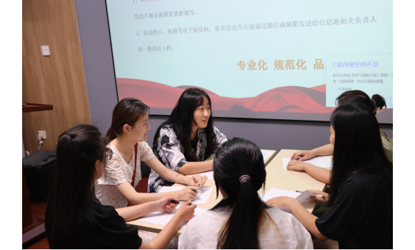 培训开始前,由志愿者带领实习大学生,对各个岗位的工作环境进行参观,初步熟悉之后正式开始岗前培训。首先,朱晓楠围绕公益活动的背景和意义展开讲述,培养实习大学生们对社会问题的关注和责任感。从具体的项目出发让实习大学生们学习如何规划、组织和管理公益活动,并在志愿者服务介绍、人际交往、礼仪培训、心理健康等方面进行了详细的讲授。随后实习大学生分成两个小组进行志愿活动模拟,通过小组讨论与合作,大学生们一次次地试验和摸索,最后成功完成了讲师布置的小组模拟任务。紧接着,由蒋文慧讲授PDCA方法,5S管理标准以及新闻写作的技巧,让各位大学生了解工作结构及环境搭建,学习新闻报道的结构和要素,如标题、导语、正文等,让实习大学生更深入的了解工作内容。