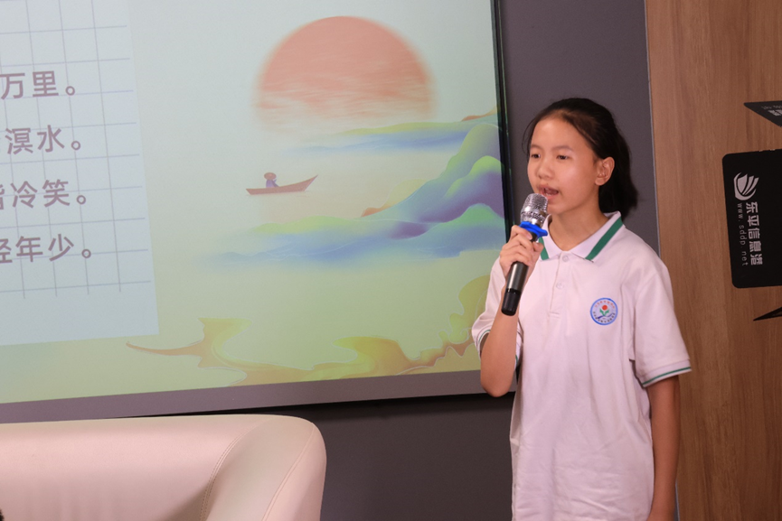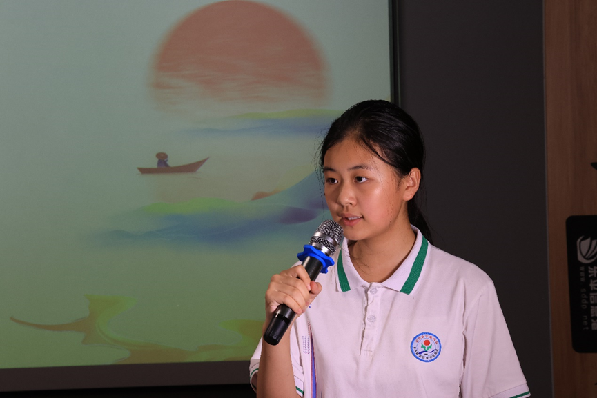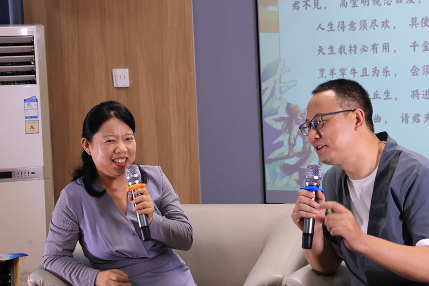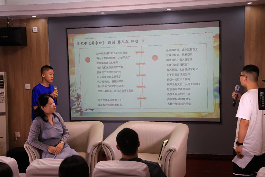 最后,卜老师提出了最后一个问题:“今天我们怎么读经典”。在这一部分,卜老师邀请滕凡森同学与林旭同学共同朗读余光中《寻李白》,并以此为例,认为应当在传承中创新,在生活中体味,用对生命的热爱书写经典的篇章!