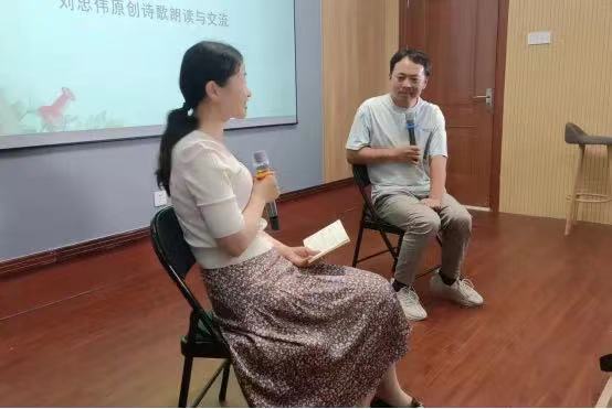 活动伊始,刘忠伟老师与大家分享了本场活动主题“纸上的日子”的灵感来源。“纸上的日子”是他在去年进行诗歌创作的主题。作为一位诗人,他认为一张纸就是一段文字的故乡,寄托着诗人精妙的构思,承载着诗人的精神家园,具有非凡的意义。以“纸上的日子”为主题,朗读者们依次上台,朗读刘忠伟老师的《纸上的日子》《影子》《望春》《养一朵云》《姑娘》《画孤独》《玉米》等许多原创诗歌,并与其深入交流阅读感受,探讨了这些作品背后的深层含义。