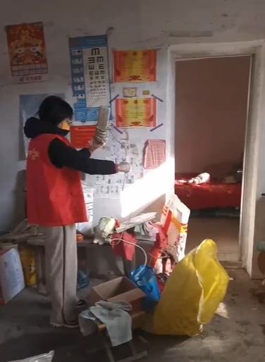 在困境儿童家中由于家里没有女性收拾,家中凌乱不堪,垃圾满地,志愿者看到此时此景,在征得家人同意的情况下,充分发扬不怕脏、不怕累的精神,对困境儿童家庭房屋进行彻底打扫,打扫中途孩子还边读英语,志愿者边收拾,一阵阵欢声笑语点亮了整个小院,经过志愿者们的辛勤劳动,房间内的卫生环境得到了极大的改善。打扫完成后志愿者并为困境儿童送上500元的助学基金,鼓励困境儿童好好学习,实现梦想。