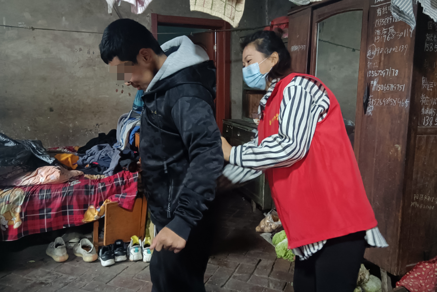 志愿者来到困境儿童小芸家,推开门,看到孩子们正在吃饭,低矮的饭桌上摆着简单的餐食,孩子们的脸上洋溢着幸福的笑容。看到志愿者,孩子们十分激动,像小兔子一样围着她诉说着学校里的趣事。志愿者们帮着孩子试了衣服,询问了孩子近日的生活情况,叮嘱了徐爷爷注意冬日屋内取暖注意安全等。