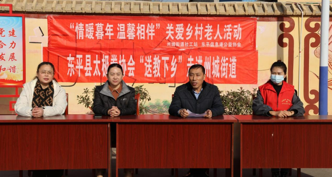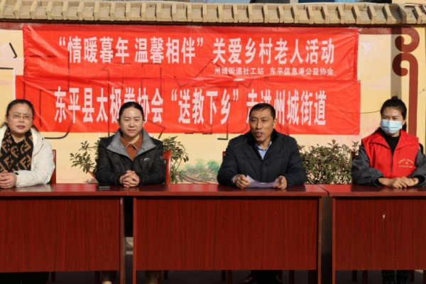 为弘扬敬老、爱老的传统美德,深化社工站社区服务工作的开展。12月7日州城街道社工站联合东平信息港公益协会、东平县太极拳协会,为州城街道张柳林村留守老人和独居老人,举办了“情暖暮年 温馨相伴”关爱乡村老人活动。州城街道社工站站长韩伟,妇联主任王晓峰,东平信息港公益协会副会长朱晓楠、原音,太极拳协会会长张梅参加活动。