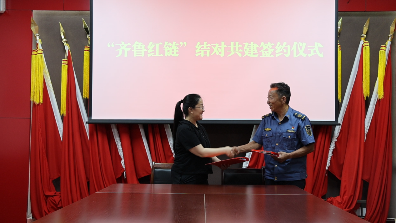 签约仪式上,双方签订党建结对共建协议书,并就下一步促进党建工作融合发展交换意见、达成联建共识,双方围绕“齐鲁红链”等内容进行深入交流研讨,通过完善健全“党建联盟”机制,构建“资源共享、优势互补、赋能发展”的基层党建工作新格局。