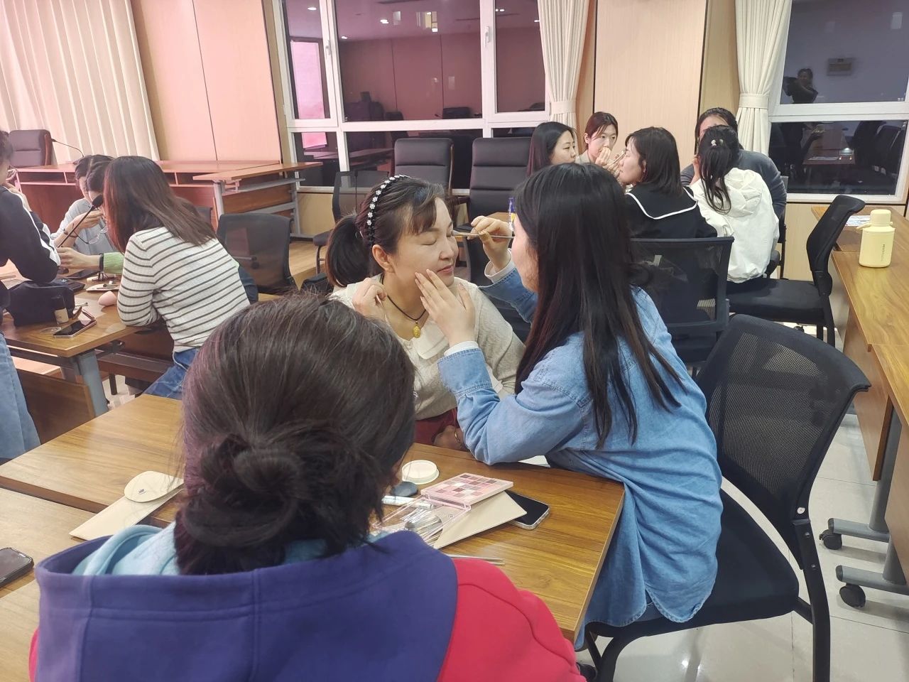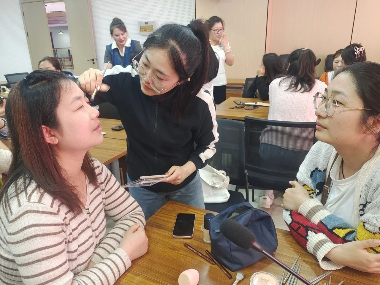 学员们兴致勃勃,根据老师的讲解演示亲自尝试操作。化妆过程中,积极向老师请教,在老师的耐心指导下,逐渐掌握了化妆的技巧。在一片欢声笑语中,大家完成了一整套化妆流程。每位学员都零距离感受到了化妆的魅力。