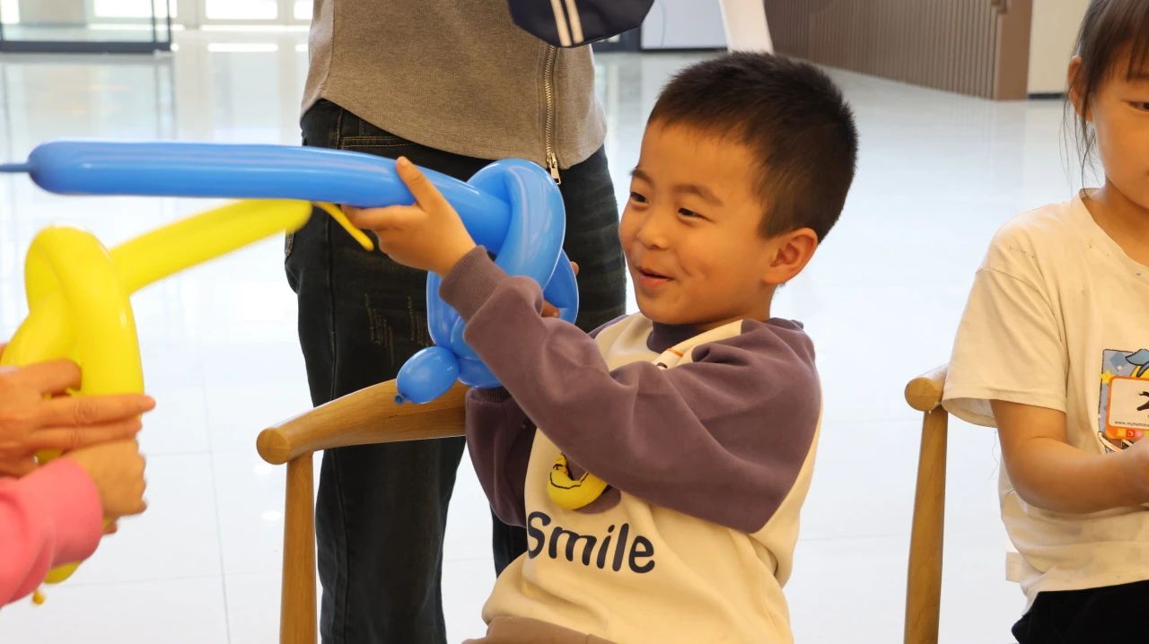 活动现场,孩子们选取自己喜欢的气球,在河马先生的指导下,认真了解制作过程和注意事项,小朋友们充分发挥自己的想象力,通过打气、揉捏、打结等一系列小手工,制作出大小形状不一的气球。看着自己的作品,孩子们在相互展示中收获喜悦。小小的气球,大大的童趣,承载着孩子们的快乐时光。