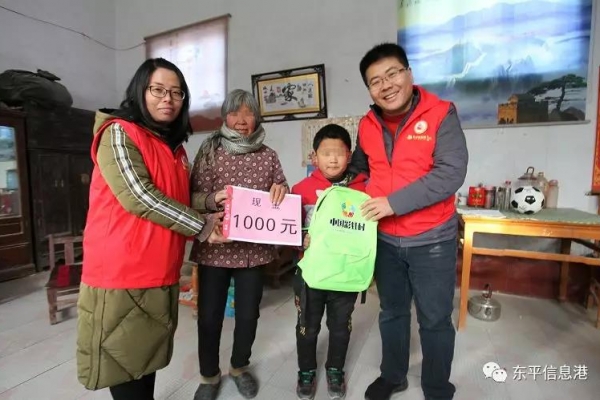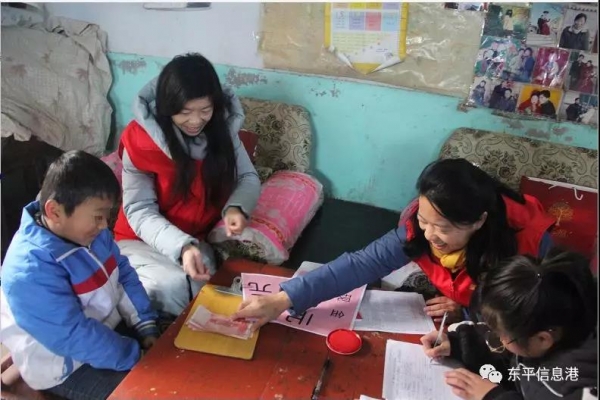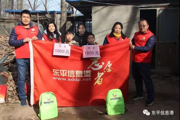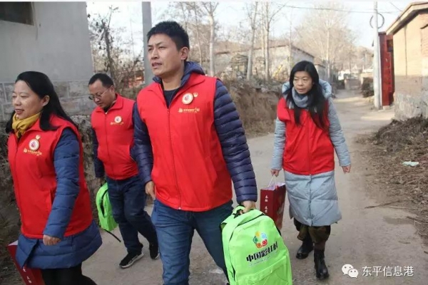 注:2018年12月8号东平信息港组织部分志愿者参加中国“彩虹村”助学走访活动。
