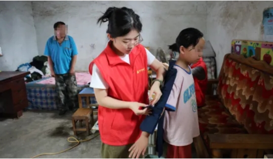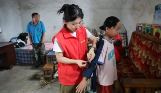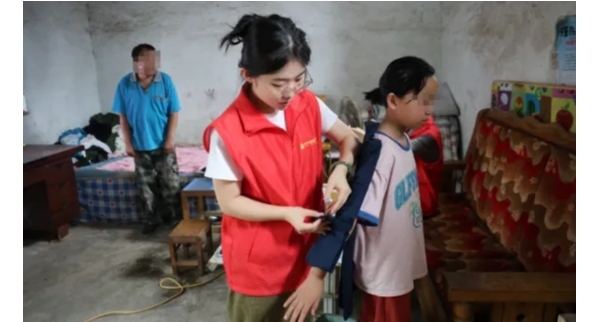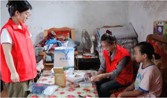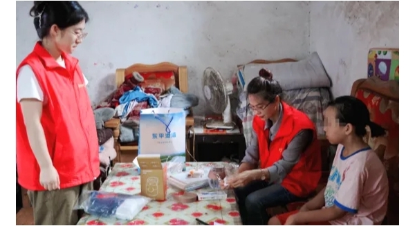 在走访过程中,志愿者在详细了解小依(化名)的生活、身体和学习情况后,并为小依送上了的牛奶、水杯、面粉、雨伞、本子、笔等学习用品和生活物资,同时鼓励小依要勇于面对困难、克服困难,保持积极向上的生活态度,认真努力学习,实现自己的人生理想。