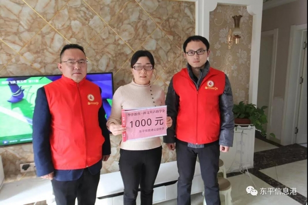 此次活动资金由“李洋教育·朗文英语助学金”专项资金提供。据了解,东平朗文英语培训学校,依托东平信息港公益协会设立“李洋教育·朗文英语助学金”,学校每年向协会捐赠2万元,帮扶我县20名经济困难、品学兼优的学生。由爱心企业设立助学金也是协会新的尝试和探索,也欢迎更多的爱心人士加入进来。近年来,东平信息港公益协会开展了“事实孤儿”一对一结对帮扶、“致富源”精准帮扶项目、党员“微心愿”活动、东平“彩虹村”项目等公益项目,积极开展走访慰问特困户、事实孤儿、特困服刑人员未成年子女、留守儿童等帮扶活动,引导社会各界关心、关注特困群体,弘扬扶贫帮困的社会主义新风尚。
