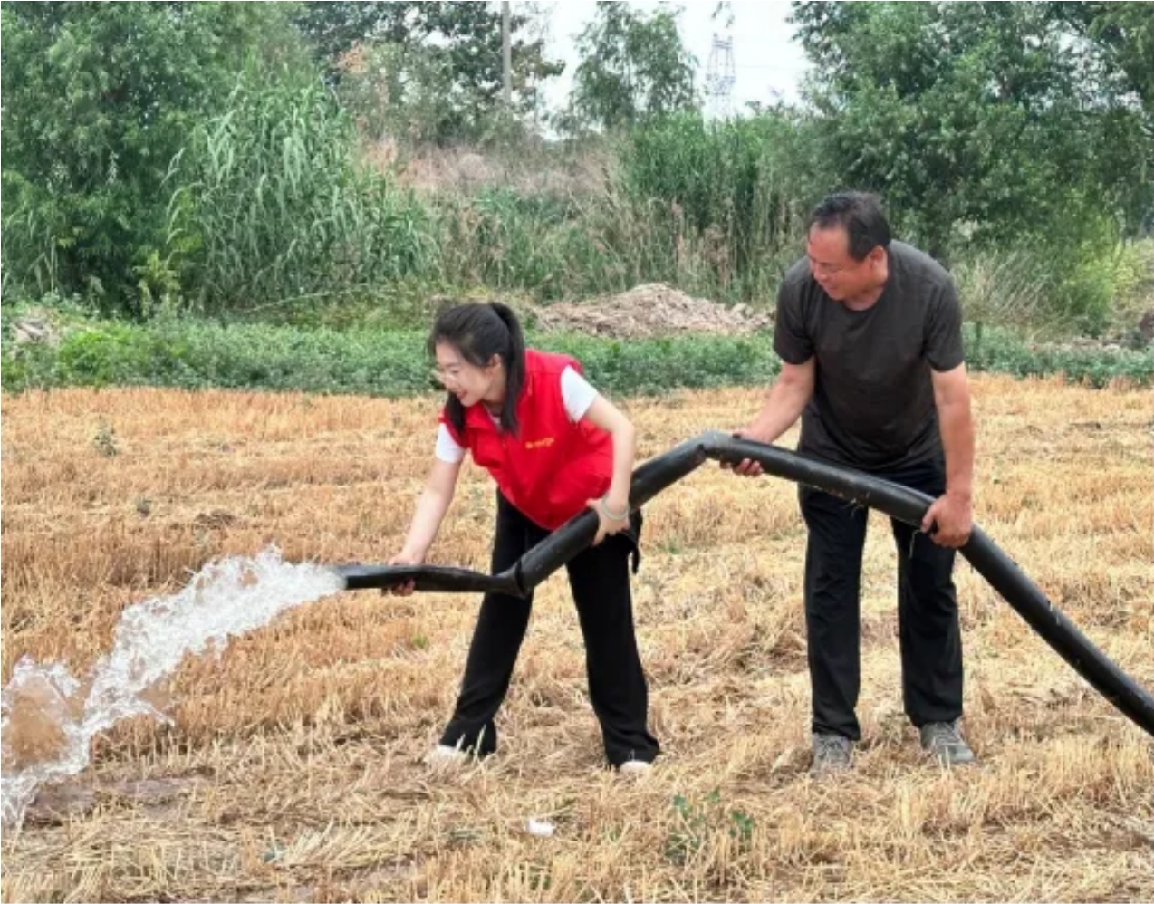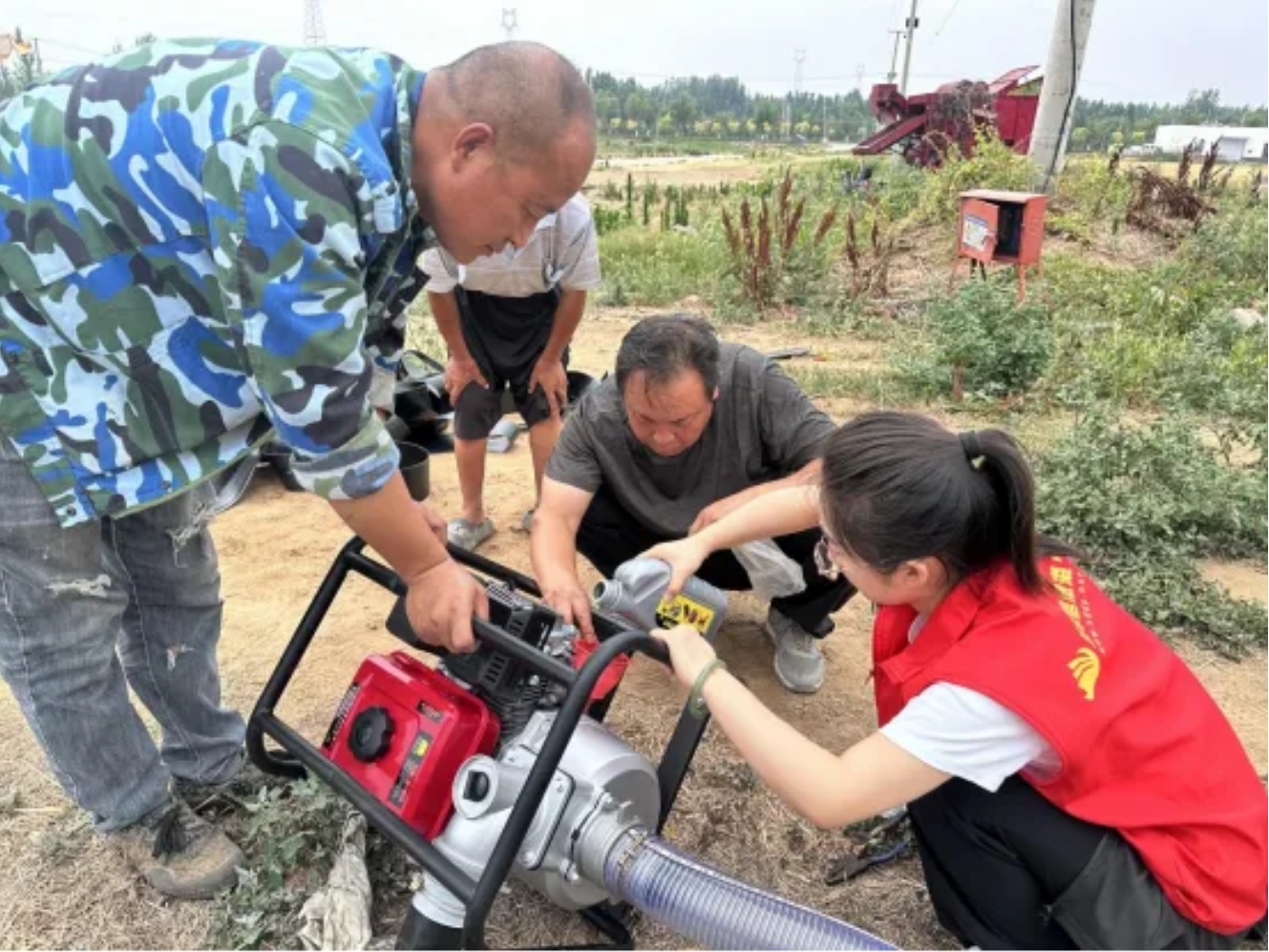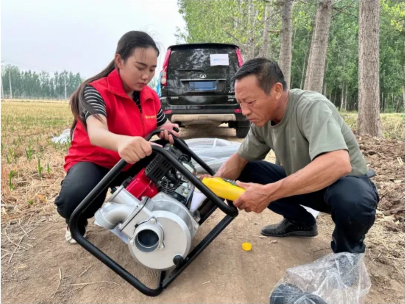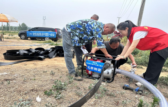当天上午,志愿者们冒着高温酷暑,深入田间地头,协助村民安装了两台崭新的汽油机水泵机组,在大家的共同努力下,两台水泵成功投入使用。随着水泵的轰鸣声响起,清澈的水流通过长长的输水管,源源不断地输送到农田中,滋润着干涸的土地,为农作物带来了生机。