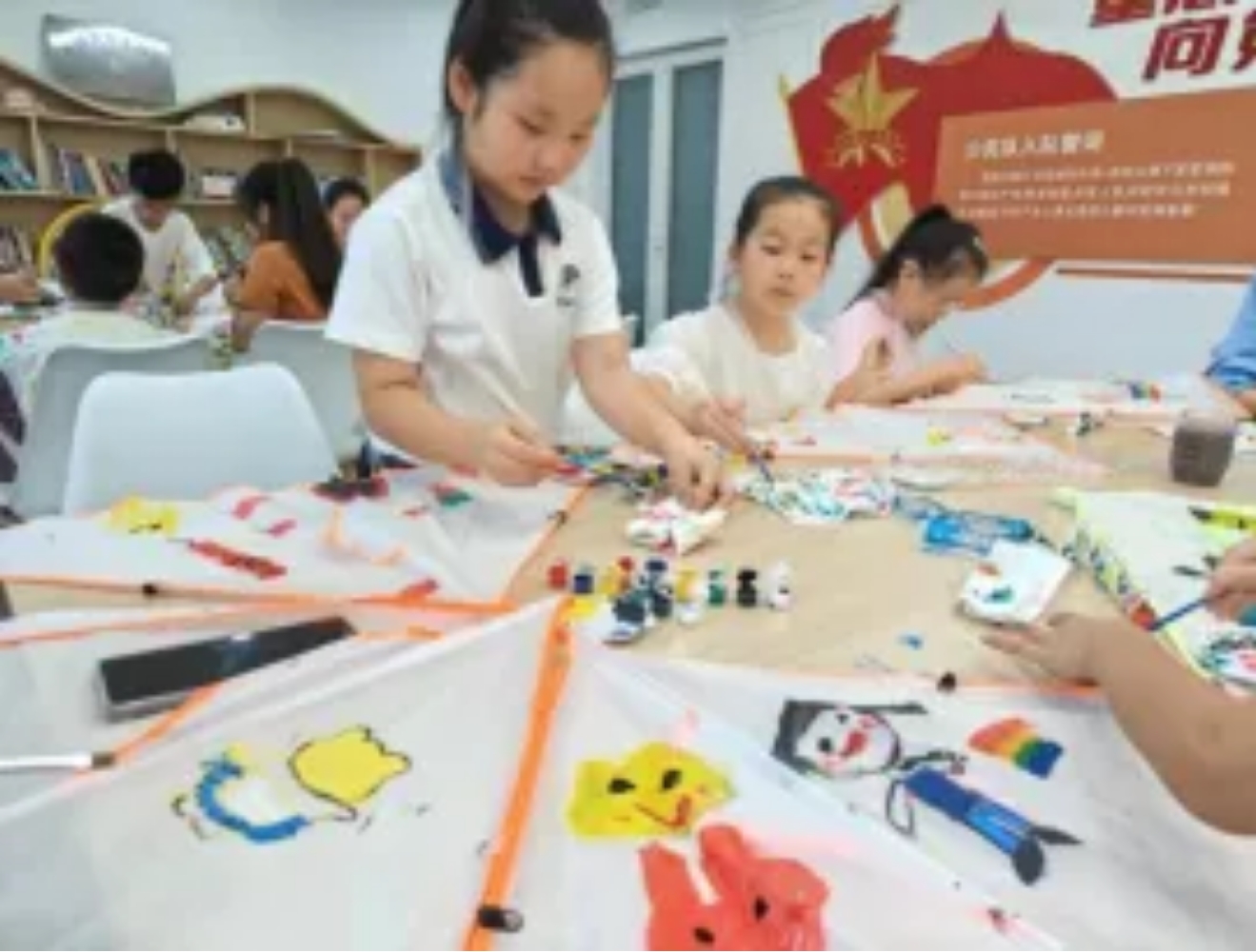 课堂上孩子们积极参与创意风筝绘画,他们拿起风筝和绘画工具,尽情发挥想象力,创作出了各具特色、独一无二的风筝作品,展现了青少年的创造力和艺术天赋。
