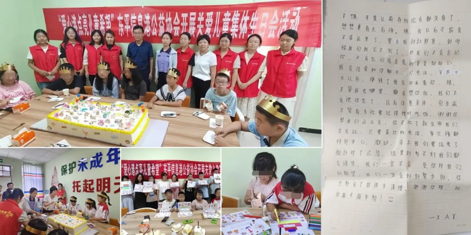 去年初他们的奶奶又突发疾病去世了,协会也增加了对这对孤儿走访和帮扶力度,去年底开展了“爱心港点亮儿童希望”关爱困境、留守儿童集体生日会,十多名困境儿童在一起过生日,协会也接来了这对孤儿来度过了快乐的一天。晚上回家后弟弟给结对结对志愿者朱晓楠打来电话,让注意看看她提包里,原来他们偷偷在包里放了他们信。信中写到:阿姨:你经常来看望我们,你每次来我们都会特别开心,你带我们玩过我们没玩过的,吃过没吃过的东西,干过我们没干过的事,也让我们见识了很多东西,谢谢你抽出时间来陪我们。因为奶奶去世,我们可能要到外地叔叔那里去了,到时可能见不到你,但我们不会忘记你,不会忘记信息港的哥哥姐姐们的。此时此景,让协会志愿者们心情沉甸甸的,现在他们爷爷身体也越来越差,远在新疆的叔叔虽然经济状况也不是很好,但前往叔叔那里也是孩子和老人目前最好的选择。