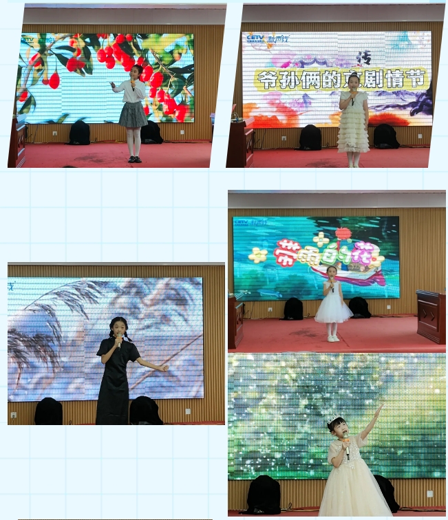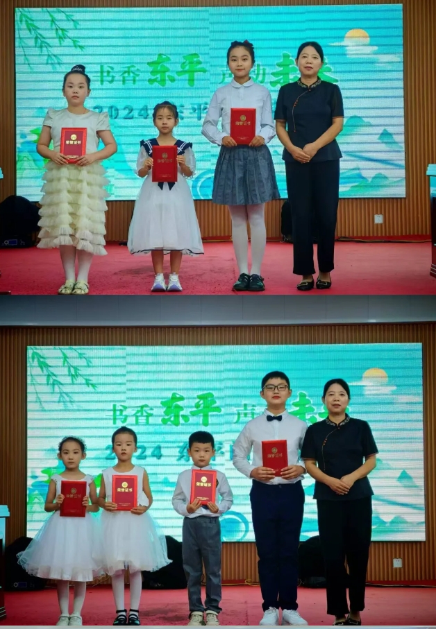 活动现场,书香四溢,声情并茂。黄艺缘的《枸杞花开》以其细腻的笔触描绘了乡村生活的恬静美好;巩佳蔚的《爷孙俩的京剧情节》展现了传统文化的传承与温情;武芮曦的《红领巾》唤起了在场观众对童年纯真的回忆;李安然的《我骄傲,我是中国人》抒发了对祖国的无限热爱与自豪;郭语桐的《带雨的花》将雨中花朵的坚韧与美丽展现得栩栩如生;韦辰的《风筝的故乡》寄托了对故乡的深深眷恋与回忆;马骏儒的《梦想花开》鼓励人们勇敢追梦;刘安冉的《我想》则表达了内心深处的渴望与向往;张智祎的《采蒲台的苇》描绘了一幅幅自然与人文交织的美丽画卷;王静宜的《春》带领听众走进了一个生机勃勃的春天世界;而孙远美的《归来》感受到了归家的温暖与安宁。随着大家绘声绘色的朗读,活动接近尾声,两位老师对选题原则、礼仪以及朗读技巧等方面进行了精彩点评,并为网络报名选手颁发了荣誉证书。
