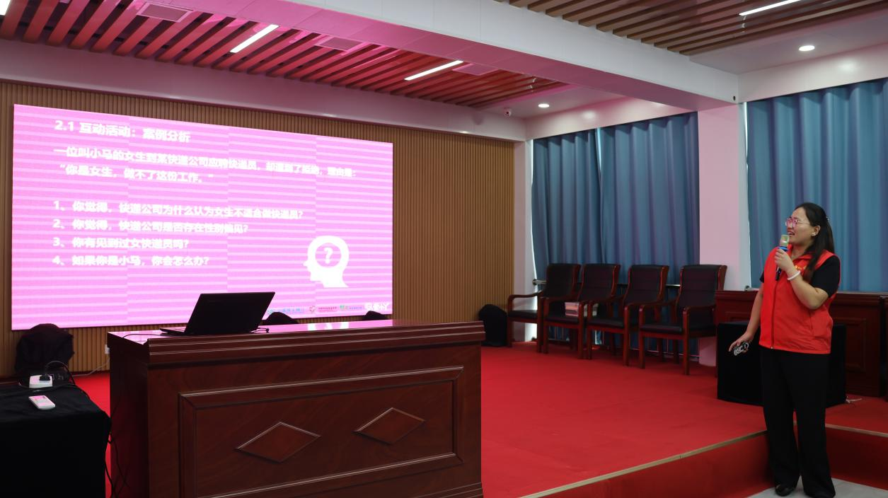“爱小丫自护小课堂”环节将活动推向了高潮。心理咨询师以一场轻松有趣的自我介绍游戏作为开场,迅速拉近了与青少年之间的距离,营造了一个温馨和谐的互动氛围。随后,心理咨询师运用浅显易懂的语言和丰富的图文资料,为青少年们上了一堂生动的安全自护课,特别强调了男女平等的重要性,引导青少年树立正确的性别观念和平等意识。