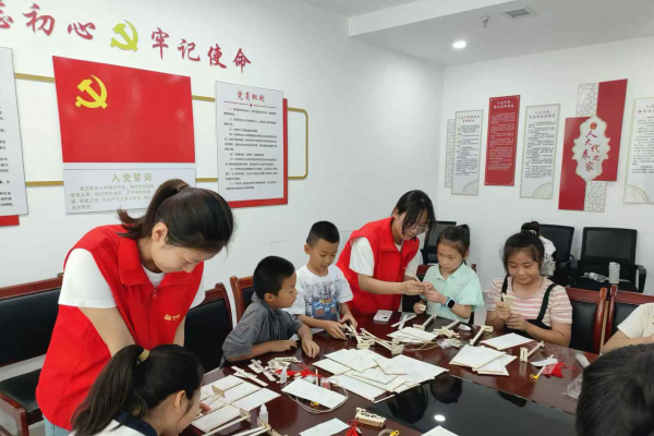 为更好地让青少年们了解我国的传统节日以及传统习俗,弘扬中华民族优秀传统文化,培养青少年的动手能力和创新思维,志愿者带领青少年们进行灯笼DIY活动。首先青年志愿者向青少年们介绍了灯笼的历史渊源和深厚寓意,使青少年们对灯笼有了更深入的了解。便让青少年开动脑筋发挥想象力和创造力,制作各式各样的灯笼。在志愿者的悉心指导下,青少年们纷纷动手制作起来。他们拿起纸张,小心翼翼地剪裁、折叠,再用丝线细细缠绕,按照自己的喜好给灯笼穿上不一样的衣裳,每一盏灯笼都充满了创意和个性。在制作过程中,青少年们不仅充分发挥了自己的想象力和创造力,还学会了如何与他人合作,共同完成任务。他们相互帮助,互相鼓励,共同克服了一个又一个困难。一盏盏小巧精致、独具特色的灯笼在青少年们的手中悄然诞生。青少年们纷纷表示,这次DIY灯笼活动不仅让他们亲手制作了灯笼,更让他们在动手实践中深刻感受到了传统文化的魅力与价值。
