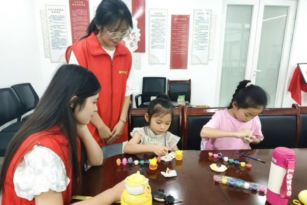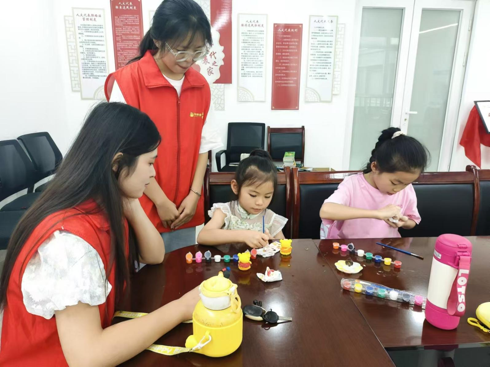 为给青少年们的课余生活增添了无限的乐趣与色彩。本次课程组织两场活动,一场是石膏娃娃涂色制作活动,另一场则是《航拍中国》纪录片放映活动,两者都以趣味性和教育性相结合的方式,在石膏娃娃涂色制作活动中,志愿者首先向孩子们介绍了石膏娃娃的制作流程和涂色技巧,并强调了安全注意事项。随后,孩子们兴奋地拿到了自己的石膏娃娃白胚和丰富的手绘颜料。在志愿者的引导和鼓励下,他们开始自由发挥,用画笔在石膏娃娃上勾勒出五彩斑斓的图案。