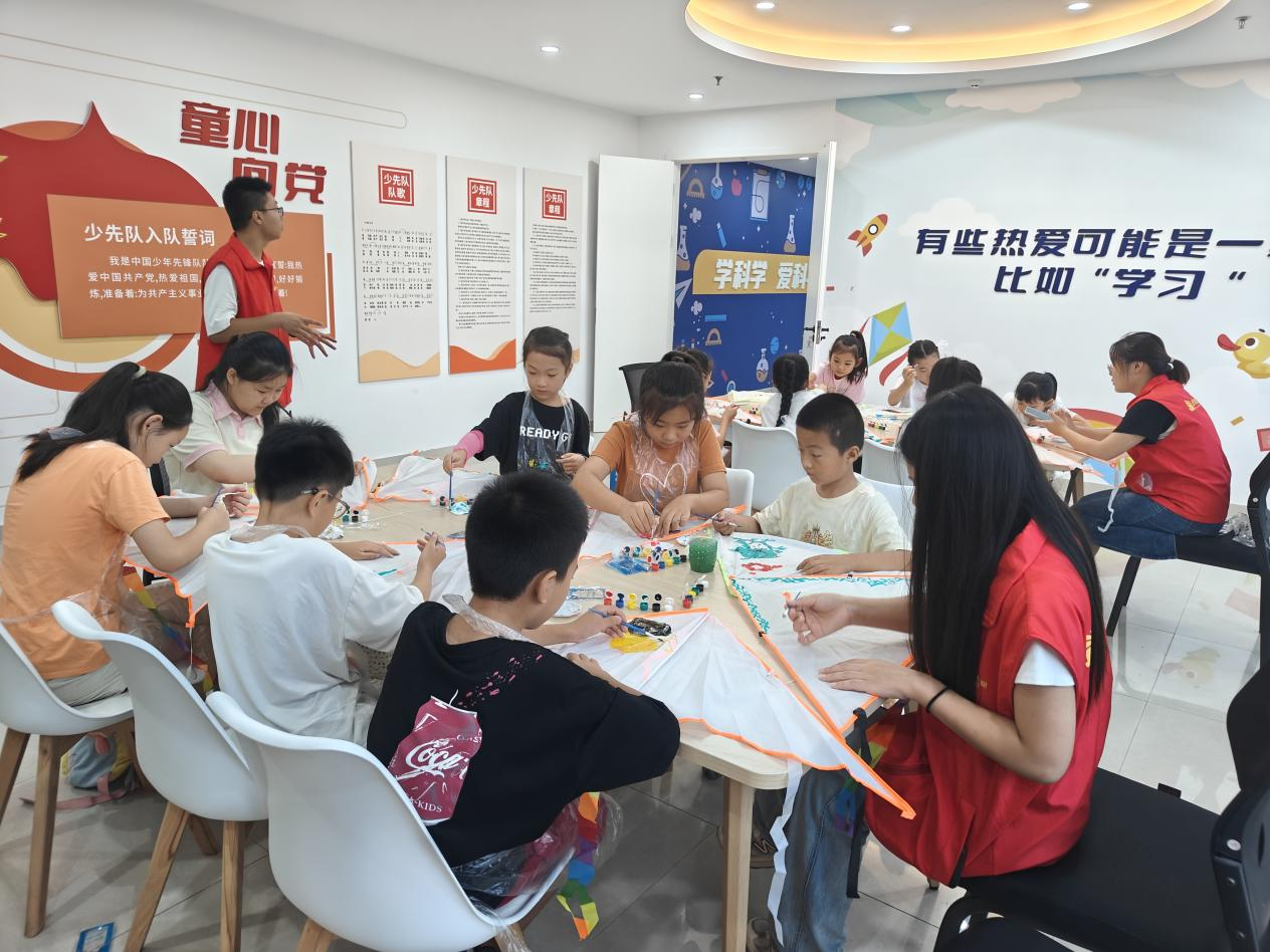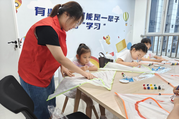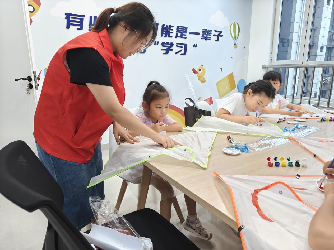 为带领青少年们了解我国传统的风筝文化,并培养孩子们的动手能力,激发青少年的想象力,志愿者引导青少年动手绘画、制作风筝。活动现场,五彩斑斓的材料、各式各样的风筝图纸吸引青少年们产生了极大的兴趣。志愿者首先向孩子们介绍了风筝的历史渊源、制作原理及安全放飞知识,让孩子们在动手之前,先对这项古老技艺有了更深的理解和认识。接着青少年们进行分组合作,从选材、设计图案、粘贴骨架到绑线调试,每一步都倾注了他们的心血与创意。有的孩子选择了传统的龙凤图案,寓意吉祥如意;有的则大胆创新,绘制出动漫角色、宇宙飞船等现代元素,展现了青少年丰富的想象力和创造力。最后,志愿者带领青少年去室外放飞风筝,看着自己动手的风筝成功在空中飞翔,孩子们别提有多开心了,通过此次活动,青少年们锻炼了自己的动手能力,开发了想象力,而且对我们中国的传统文化有了更加深刻的认识,都纷纷表示今后要学习更的的中国传统技艺。