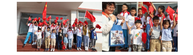用灿烂的笑脸同鲜艳的五星红旗合影,对祖国致敬。