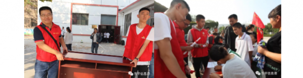 随后,分别由总工会副主席黄启真,东平信息港公益协会党支部书记、会长李景光,公益项目东平朗读者大会执行总导演孙新为到场的团队授旗。