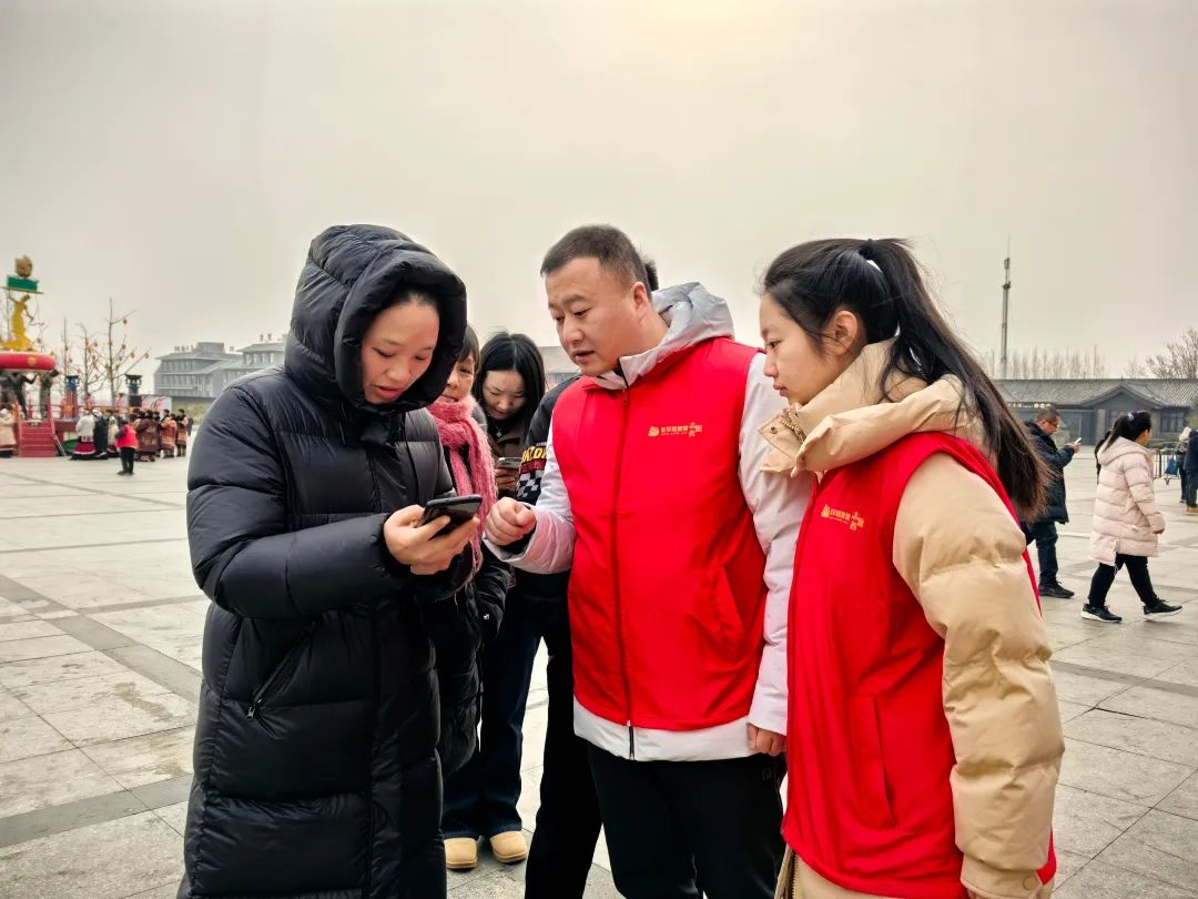 “请游客朋友们有序排队等候”“你好,购票完成后请继续前行进入景区”。面对络绎不绝的游客,志愿者们身穿红色马甲,通过宣讲旅游景点推介、门票预约、交通指引、提供咨询服务等形式,广泛宣传我县旅游品牌,并向游客介绍大宋不夜城内游玩好去处、美食打卡点等,为游客提供优质的旅游咨询及引导服务,表达对游客们的热情欢迎。在热心回答游客咨询的同时,志愿者们做好道路引导、景区介绍,车辆停放引导等服务,最大限度满足游客多元化需求,用细致入微的服务温暖着游客的心。电话:0538-2822003