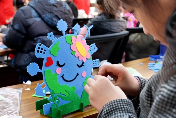 活动进入高潮环节,志愿者们向青少年们发放了DIY毛毡材料,鼓励大家发挥创意,制作爱护地球的毛毡作品。青少年们热情高涨,纷纷动手制作。有的按照图片上的样式一点一点为地球母亲增添颜色,有的则发挥创意,按照自己的想法为地球画上独特的“妆容”。在志愿者的帮助下,一个个充满创意的地球毛毡作品很快完成了。青少年们展示自己的作品时,纷纷讲述了创意来源。一位青少年表示,他认为地球母亲也是爱美的,不希望河流湖泊被污染,绿色植被逐渐消失。因此,我们要用实际行动来装扮和保护地球母亲。