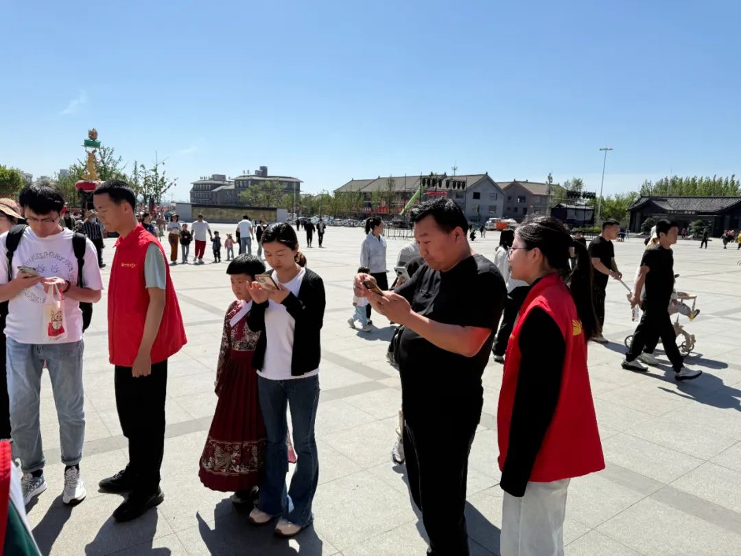活动现场,身着红色马甲的志愿者们穿梭在熙熙攘攘的人群中,成为景区一道美丽的风景线。“请大家注意安全,有序游览”“您好,这边可以扫码预约其他景点”,志愿者向游客详细介绍各景点特色;耐心指导游客进行门票预约,帮助不熟悉操作的游客顺利进入景区;为游客提供交通指引,告知公交线路、停车位置等信息,确保游客出行顺畅。同时,志愿者们还向游客们分享了景区内特色美食打卡点、趣味游玩项目,让游客们感受到东平旅游景点的魅力。面对游客提出的各类问题,志愿者们始终面带微笑,耐心解答,全力做好道路引导、景区介绍、车辆停放指引等工作,让游客们感受到东平人的热情好客。