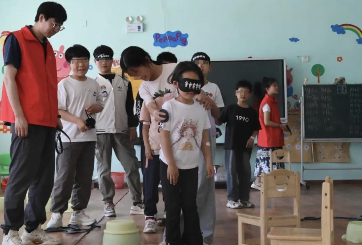 游戏《冲出重围》则将活动推向高潮。在黑暗与无声的环境中,孩子们只能凭借彼此的肢体接触和心灵感应,携手突破“重围”。这一过程不仅考验着团队的协作能力,更让孩子们感受到在困境中,团队给予的力量与温暖。