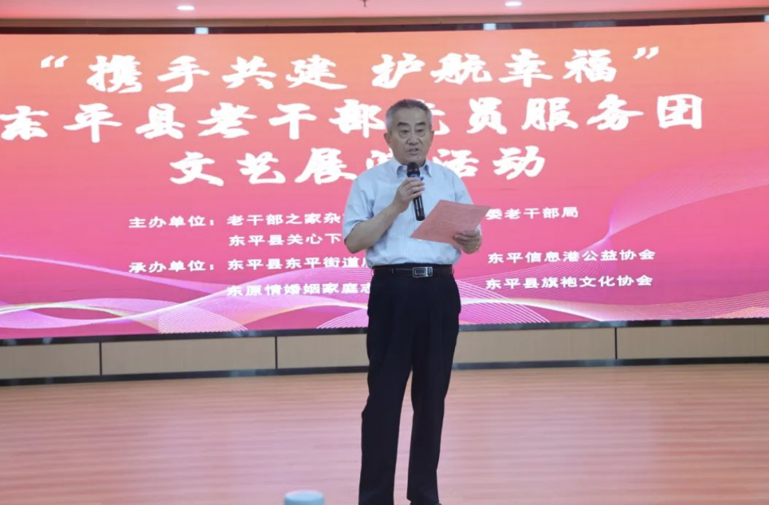 为不断深化“党建+志愿服务”模式,推动全县老干部志愿服务水平再上新台阶。6月20日,东平县委老干部局联合《老干部之家》杂志社、东平信息港公益协会,在东平街道后屯社区成功举办东平县老干部党员服务团文艺展演活动,拉开了我县老干部文化活动进社区的序幕。县关工委常务副主任、县离退休干部党员服务团团长何振泉作致辞。县关工委、县委老干部局、县妇联、县民政局婚姻登记处、东平街道后屯社区相关领导出席活动。“东原情”婚辅志愿团、东平县旗袍文化协会、东原京剧票友和后屯社区群众代表参加展演活动。