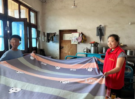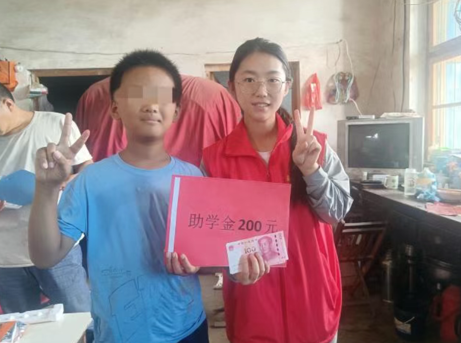 “阿姨,来的路上雨大不大?赶快进屋...”小亮拉着志愿者的手关心地说。志愿者赶忙应道:“好嘞,你看阿姨这次给你带了很多好吃的。”在聊天中,志愿者了解了小亮近期的学习和生活状况,并叮嘱小亮快期末考试了,这段时间好好规划规划复习时间,争取考个好成绩!随后,志愿者将爱心人士张女士捐赠的200元助学金及生活物资交到小亮的手中,他开心地对志愿者说:“帮我谢谢阿姨们,我一定会好好学习,不辜负你们的期望。”