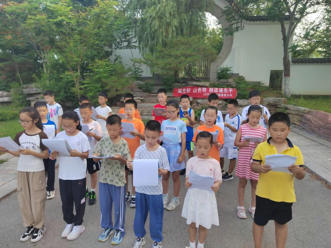 当第一缕金线穿透薄雾,孩子们倚着斑驳的山石展开书卷,在《诗经·魏风·硕鼠》的韵律中触摸先民智慧,在《曹刿论战》的谋略里感悟历史脉动,《陈情表》的赤诚与《蒹葭》的婉约,更让古文之美如清泉般浸润心田。松涛阵阵与鸟鸣啾啾交织成天然配乐,阳光在孩子们跃动的发梢跳跃,墨香与草木清香在晨风中流转。