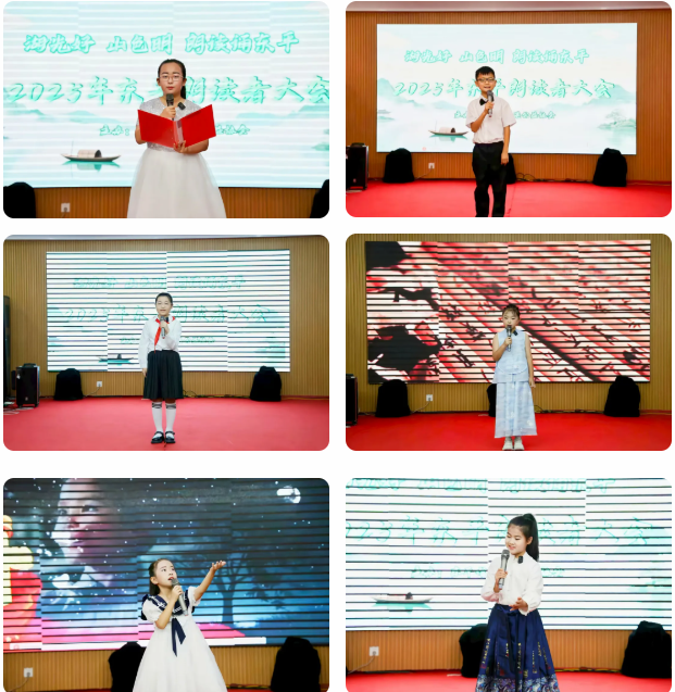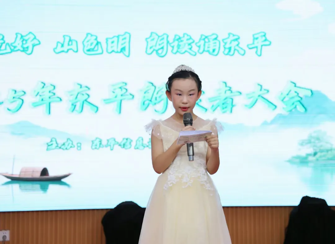 活动现场,16位小小朗读者以“声音绘卷”形式展现文化传承力量。郭俊宁以一首《唐诗里的中国》拉开序幕,将李白“举杯邀明月”的豪情与杜甫“家书抵万金”的深情娓娓道来。侯绪骢原创的《千年水韵普华章之东平》,用童真的视角讲述家乡运河的古今变迁。潘腾扬用稚嫩的声音诉说《我的小小梦想》,展现了新时代少年的远大志向。赵景晨朗诵的《画鸡》活泼生动,刘新琪演绎的《如果》充满童趣。李简祎带来的《十月的中国》气势恢宏,陈述的《华彩国粹》展现了传统文化的独特魅力。徐田一深情讲述《红色村落山神庙》,让革命精神在新时代焕发光彩。董兴辰以饱满的热情朗诵《少年中国说》,“少年强则国强”的呐喊振奋人心。战梦琪用《我的南方北方》展现了对祖国山河的热爱,徐俊楷的《中华少年》彰显了新时代少年的责任担当。李诗涵带来的《这盛世如你所愿》感人至深,孟响朗诵的《中国话》展现了汉语的独特韵味。武芮曦用纯真的声音诠释《小萝卜头的自由》,王肃焮朗诵的《中文之美》让人领略到汉语言的博大精深。张智祎带来的《桃花心木》,以富有哲理的文字引发观众深思。
