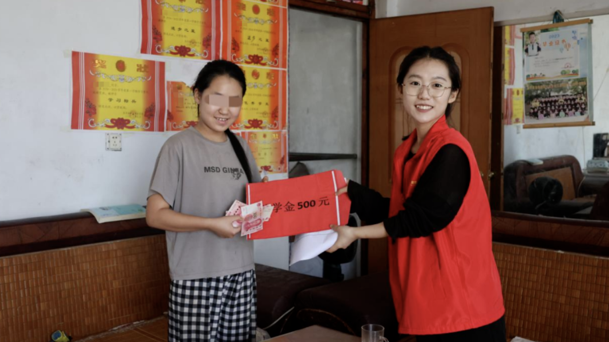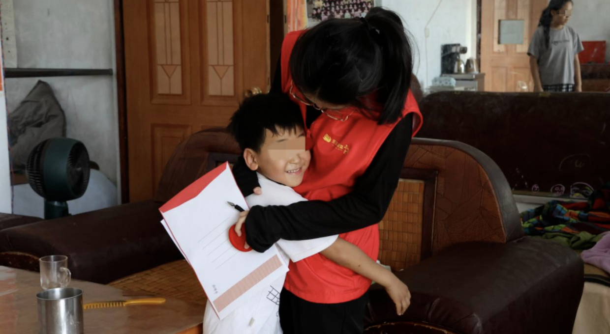 走访中,困境儿童小丽(化名)看到志愿者来了兴奋得从板凳上蹦了起来,连忙带着志愿者走进卧室,拿着毛绒玩具说:“阿姨,这是上次你们送给我和弟弟的娃娃,我每晚都抱着它睡。”说说笑笑间,志愿者问起小丽和弟弟的近况,她接着翻出作业本,指着工整字迹,满脸自豪地说:“你看,我和弟弟的作业都完成了!”随后,志愿者为小丽送上了爱心人士袁先生捐赠的助学金,并鼓励她要好好学习,成为更好的自己!更优秀的自己!