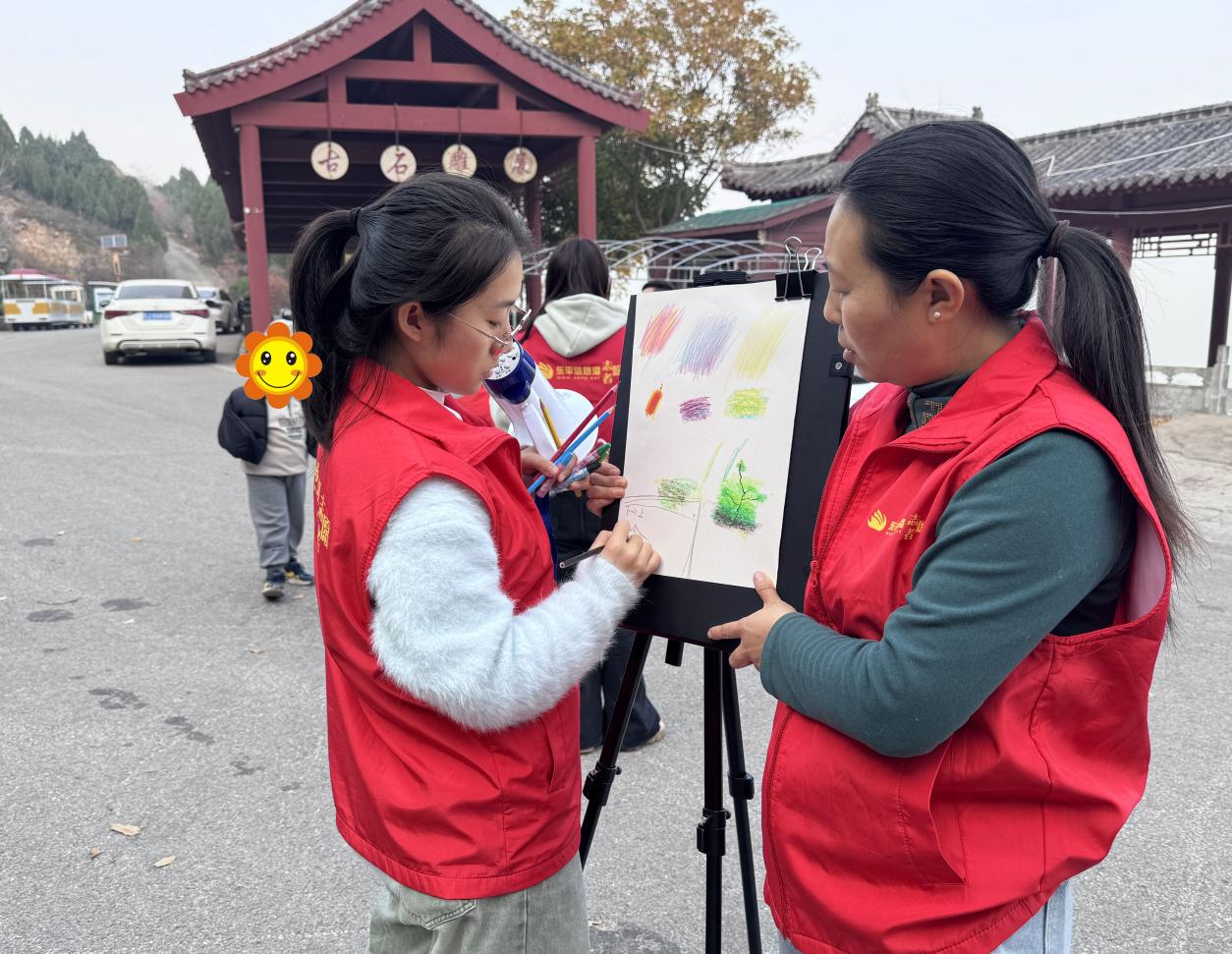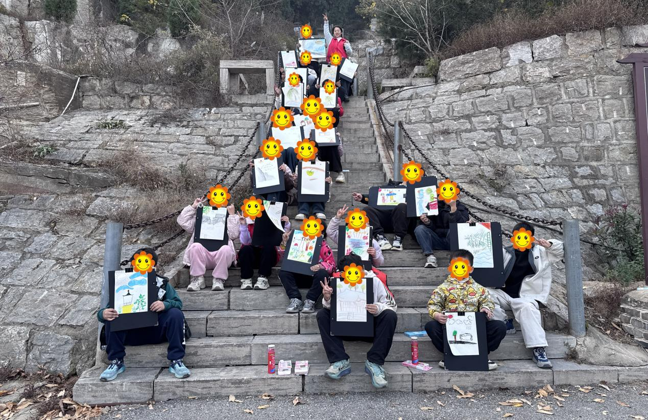 本次活动以“发现家乡小美好”为核心,聚焦儿童心理成长与能力提升,精心设计多重体验环节。美术老师王燕琪通过美学启蒙与感知激活,引导孩子们近距离观察昆仑山的山水、植被、建筑等风景细节,系统传授蜡笔铺色、彩铅勾勒的基础技法。孩子们在多感官接触自然的过程中,激活感官知觉,逐步提升观察力、色彩感知力与动手创作能力,充分契合“自然暴露促进感知统合”的心理学原理。