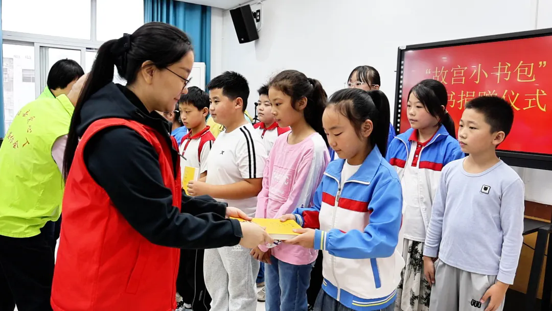 活动伊始,志愿者向在场人员介绍了本次捐赠活动的背景与内容。此次活动聚焦乡村教育需求,精心挑选涵盖历史、文化、艺术等领域的优质故宫主题图书,共向三所学校捐赠图书200册。