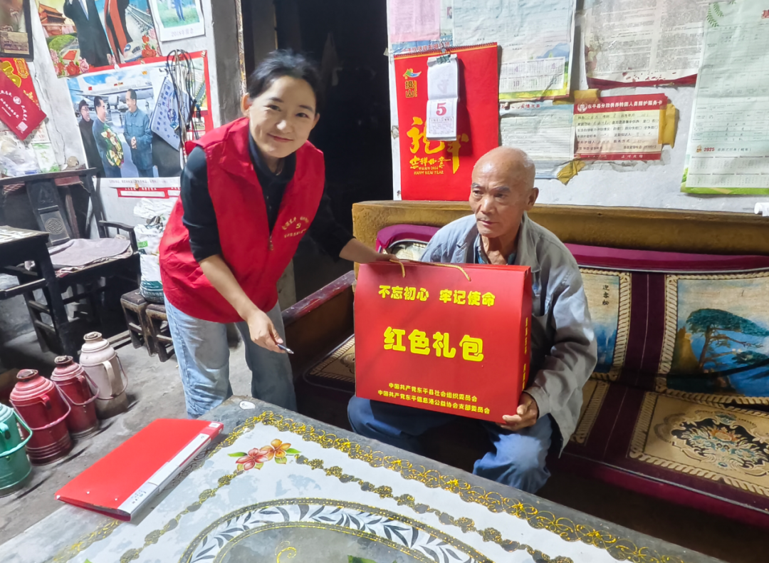 10月5日,在中秋佳节来临之际,东平信息港公益协会党员志愿者王倩倩带队到接山镇,开展“红色礼包”特困老人关爱活动,以实际行动传递社会温暖,弘扬尊老敬老的传统美德。