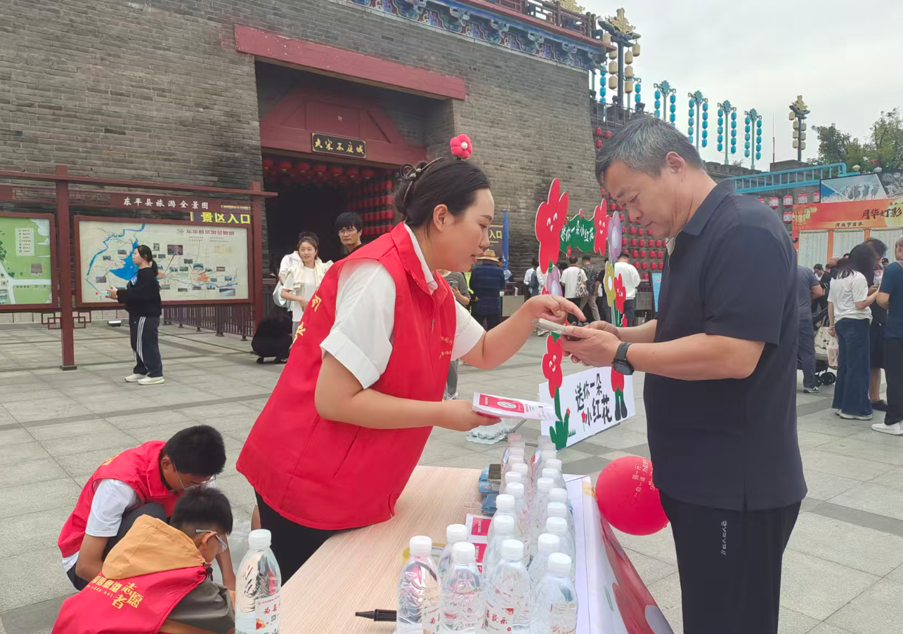 东平湖文旅集团积极响应公益号召,在大宋不夜城景区设置募捐点。古色古香的城墙下,身着红马甲的志愿者手持“爱心小红花”,成为大宋不夜城中最动人的风景线。“每一元都是点亮希望的星光”,志愿者蒋文慧一边引导市民扫码,一边讲述款项用途,引得往来游客驻足聆听。