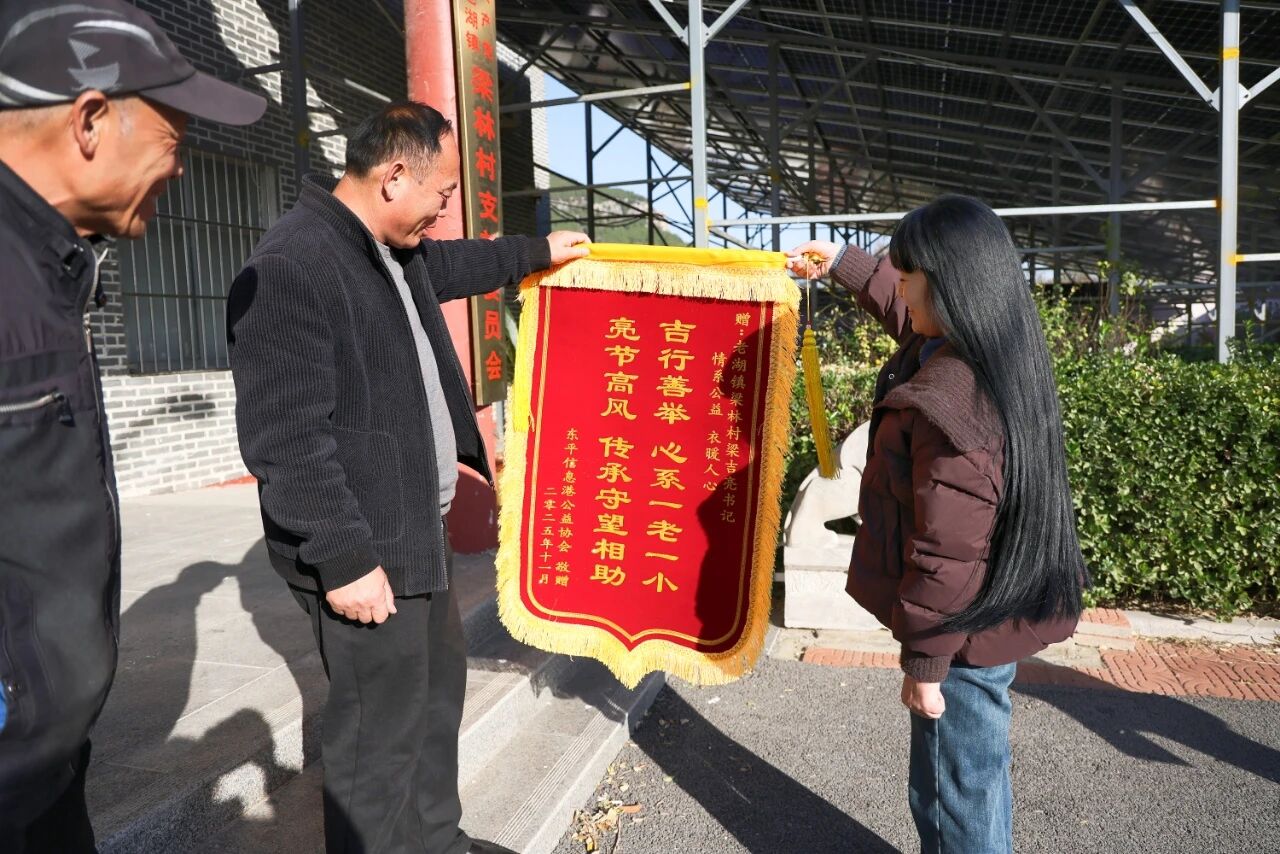 为了表达对梁书记为困境家庭送暖的感谢,协会特意送上以书记名字嵌名的锦旗:“吉行善举 心系一老一小;亮节高风 传承守望相助”之赞誉,恰如其分地概括了梁书记的善行与品格,彰显了他高尚的品德和传承互助精神的责任担当。
