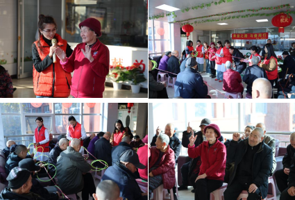 活动伊始,志愿者以聊家常的方式与老人们聊天交流,迅速拉近了与老人们的距离。现场气氛轻松愉悦,老人们脸上洋溢着灿烂的笑容,仿佛回到了与亲朋好友欢聚的时光。随后,志愿者带老人们进行了“手指变变变”“接龙小圈”等热身小游戏,老人们全神贯注、配合默契,小圈如彩色丝带流动。通过巧妙的协调配合,现场欢笑声此起彼伏,这不仅锻炼了老人们的反应能力和手部灵活性,更让他们在团队协作中感受到了集体荣誉感和成就感。最后,志愿者们将龚俊粉丝团俊味仙为老人们捐赠的70袋大米送到老人的手中,让老人们在寒冬中感受到实实在在的温暖。