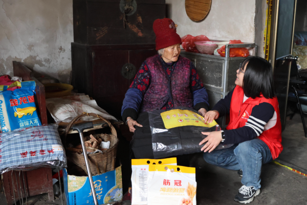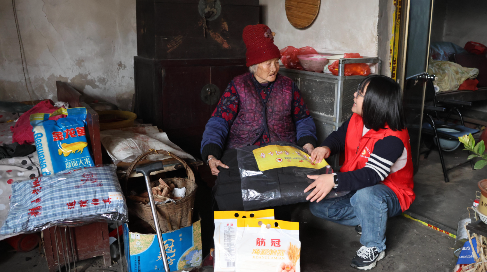 “大爷,我们来看您啦!”志愿者推开老人家门,亲切的问候驱散了屋内的清冷。志愿者耐心地为老人披上崭新的棉马甲,帮助老人理顺衣领的褶皱,并叮嘱老人:“天冷了,一定要注意保暖。”老人粗糙的手掌紧紧攥住志愿者的手,激动地说道:“你们真的像亲人一样,我这心里一下子就暖和了。”在大羊镇,吴奶奶接过装满爱心物资时,眼眶泛红,声音略带哽咽道:“孩子们,谢谢你们一直想着我,这么冷的天还专门跑过来看我。”志愿者们围在老人身边,听她讲过去的故事,询问她的身体状况和生活难题,欢声笑语让寂静的小院充满了温馨气息。