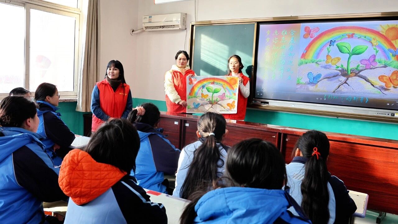 课程开始前,东平信息港公益协会副会长姚瑞在破冰游戏环节,以欢快有趣的互动游戏为铺垫,向女孩子们播放了《春柳》视频,并为女孩们展示了亲手画的春柳图。以绘画为桥梁,向女孩们深情传达出,每一个女孩都恰似雨后破土而出的嫩芽,满含生机与希望。在未来的人生旅程中,无论顺境还是逆境,都要学会向下扎根汲取力量,向上生长追逐阳光,同时,她也鼓励女孩们要勇敢无畏地追寻自己的梦想。