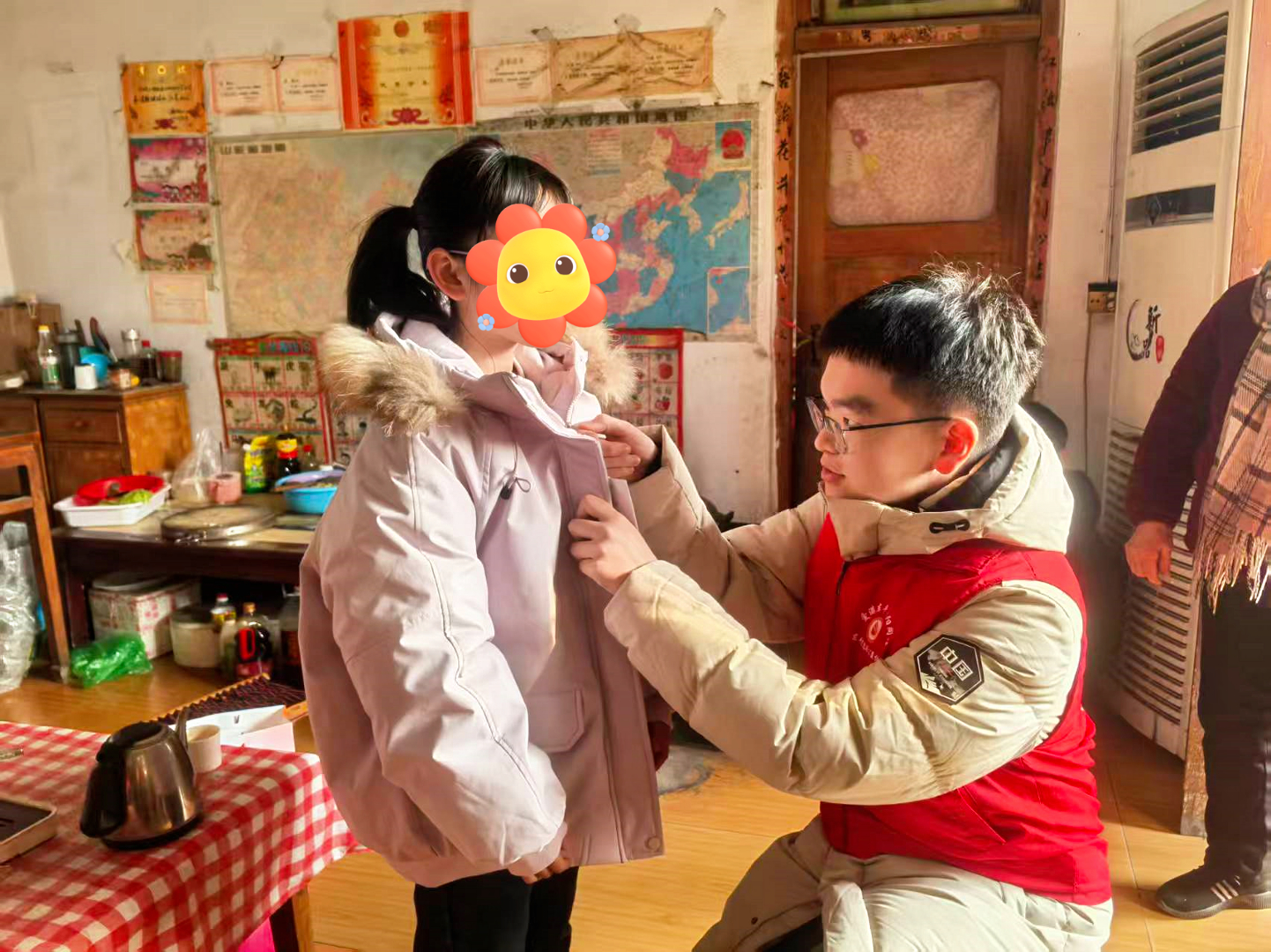 活动现场,志愿者们将爱心人士赵先生捐赠的共计2100元助学金及衣物,逐一送到小爽(化名)、萱萱(化名)、玉玉(化名)3名孩子手中。抵达小爽和萱萱家中时,懂事的姐妹俩早已在门口等候,看到志愿者们的身影,立刻热情地上前招呼,主动邀请大家进屋取暖。志愿者们细心地为姐妹俩试穿新羽绒服,两个孩子眼里满是喜悦与感动。志愿者们耐心叮嘱她们要好好学习、奋发向上,不负爱心人士的关怀与期望,在温暖与关爱中安心成长、向阳而行,努力成为有理想、有担当的新时代少年。