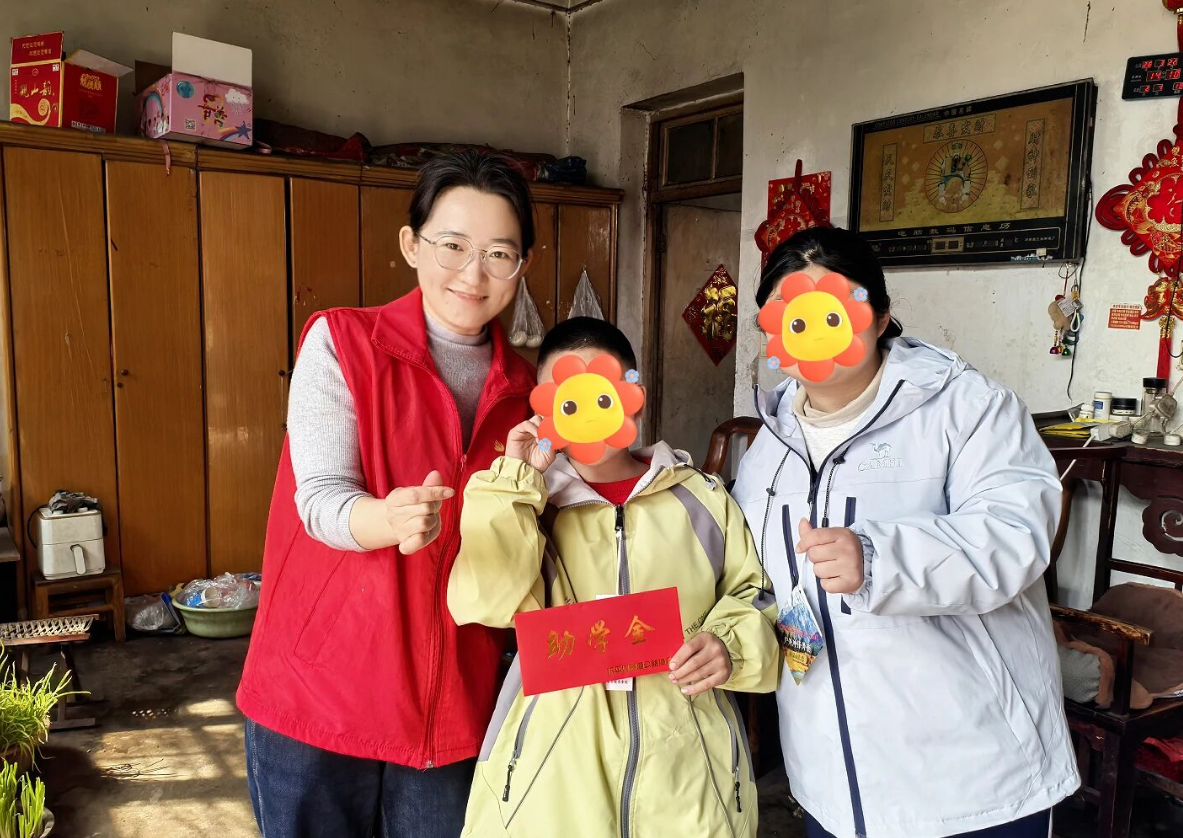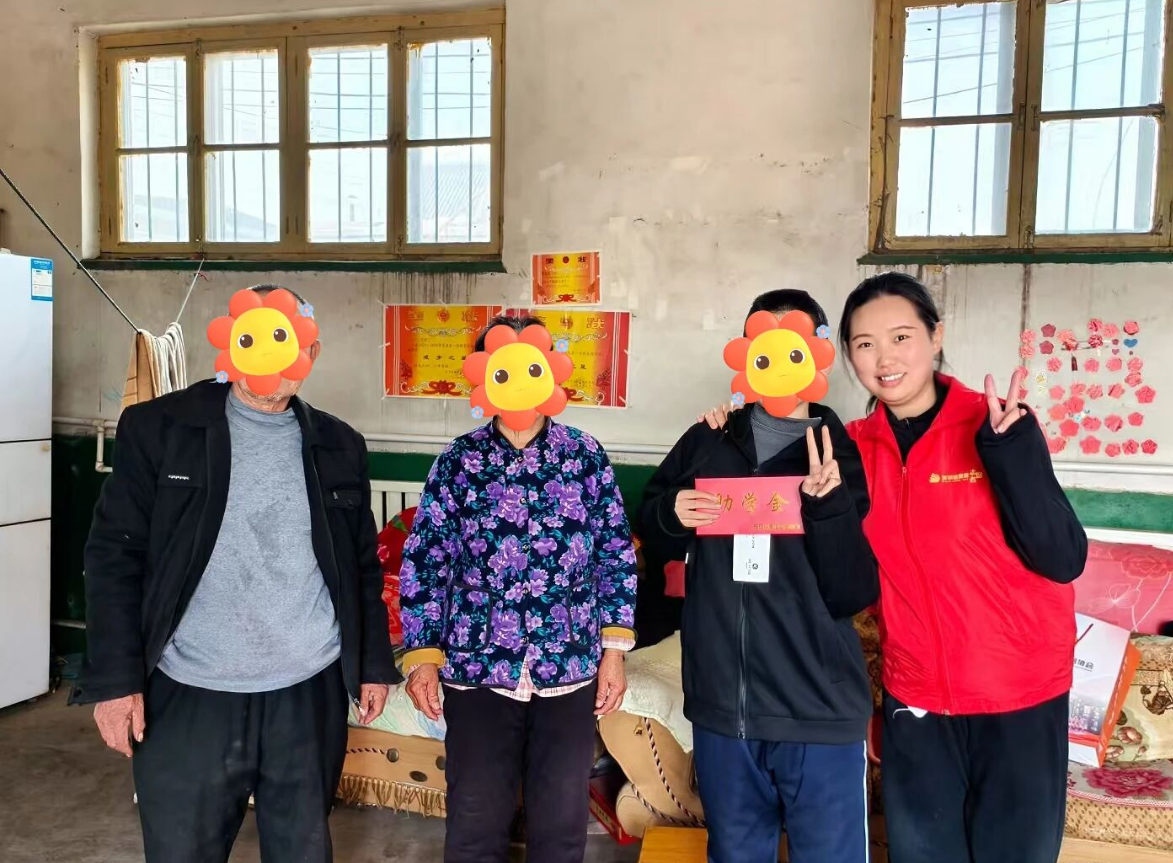 志愿者们随后来到小浩(化名)家中,性格内向的小浩起初略显拘谨,默默坐在一旁不愿多言。当崭新的衣服递到他手中时,孩子眼里瞬间有了光彩,腼腆地笑着道谢:“谢谢阿姨,我很喜欢。”眼底的怯懦渐渐消散,脸上浮现出被关爱的温柔笑意。志愿者们将助学金送到他手中,轻声叮嘱他要认真学习、勇敢面对生活,遇到困难可以随时和协会志愿者联系。