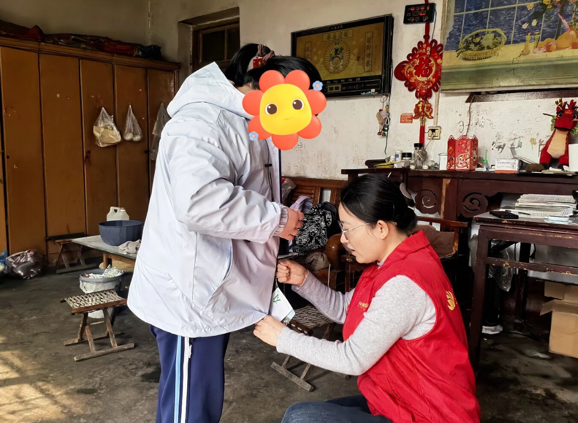 每走进一户家庭,志愿者们都与孩子及家属亲切交谈,仔细询问孩子们的日常生活、学业进展,耐心倾听他们成长中的困惑与期盼,用暖心的话语鼓励孩子自信成长,驱散他们心中的孤单。交谈间,志愿者们将爱心人士高女士捐赠的700元助学金,以及提前根据孩子身高、尺码准备的全新衣物,一一送到孩子们手中。小帅(化名)和莹莹(化名)接过新衣服时眼睛亮了起来,小心翼翼地捧着衣物、反复摸着布料,脸上露出腼腆又灿烂的笑容,轻声对志愿者说:“谢谢阿姨,这衣服真好看,穿着也很合身。”简单的话语满是纯粹的欢喜,也让现场志愿者倍感暖心。
