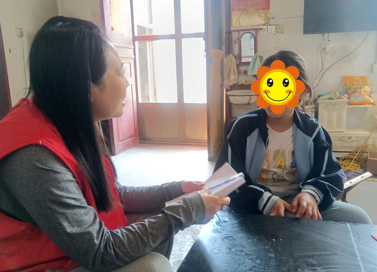 交流过程中,小玉也向志愿者倾诉了心中的担忧,提到年后正月初九小玉亲眼目睹了爷爷突然吐血情况,住院治疗了很长一段时间,当时自己十分害怕。志愿者们耐心倾听孩子的心声,温柔地安抚孩子的情绪,仔细询问孩子的家庭近况、生活需求以及爷爷的身体恢复情况,鼓励孩子要坚强勇敢,好好学习,保持乐观积极的心态面对生活,同时叮嘱孩子要照顾好自己。