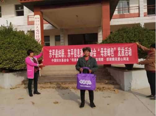 2019年11月22向东平县梯门镇贫困母亲发放“母亲邮包”4份。目前该项目剩余“母亲邮包”10份。